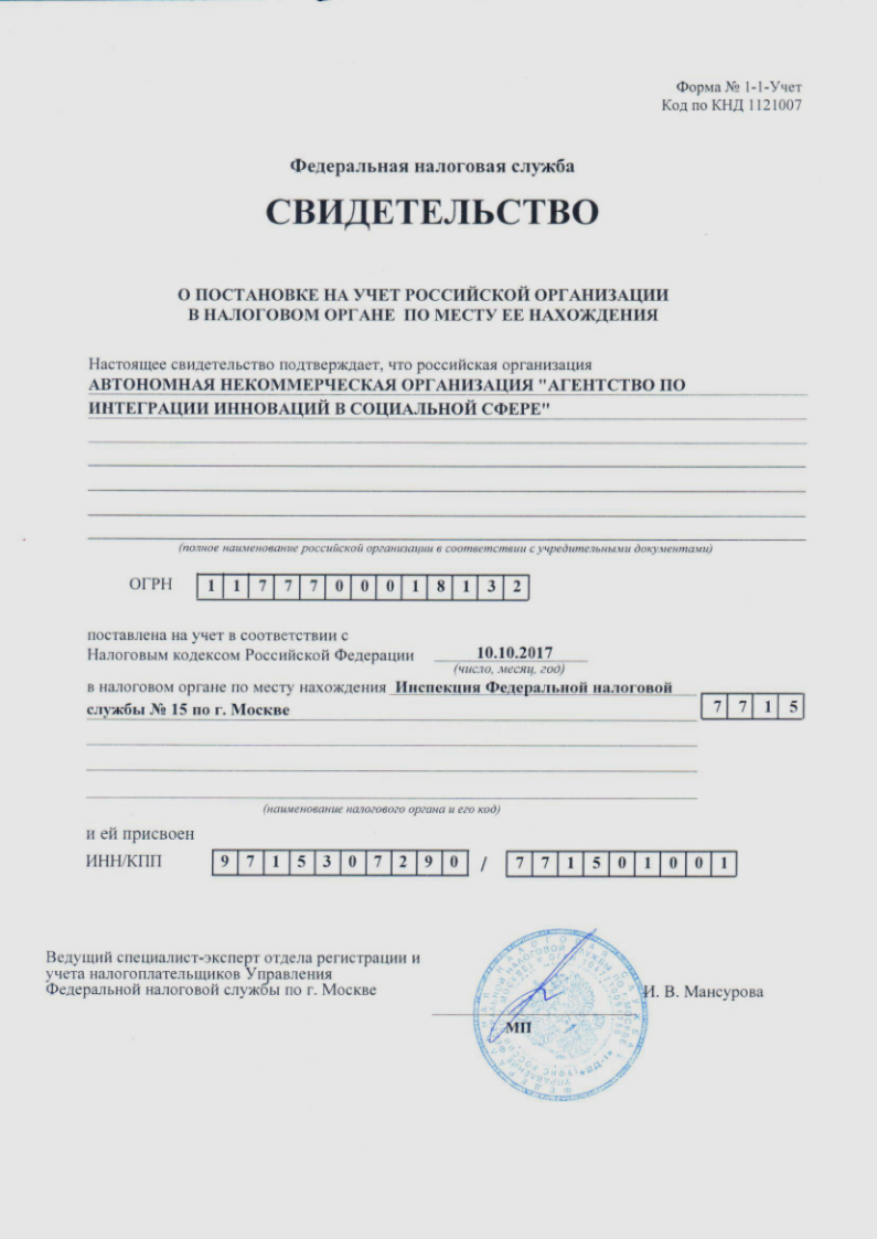АНО “Агентство по интеграции инноваций в социальной сфере”